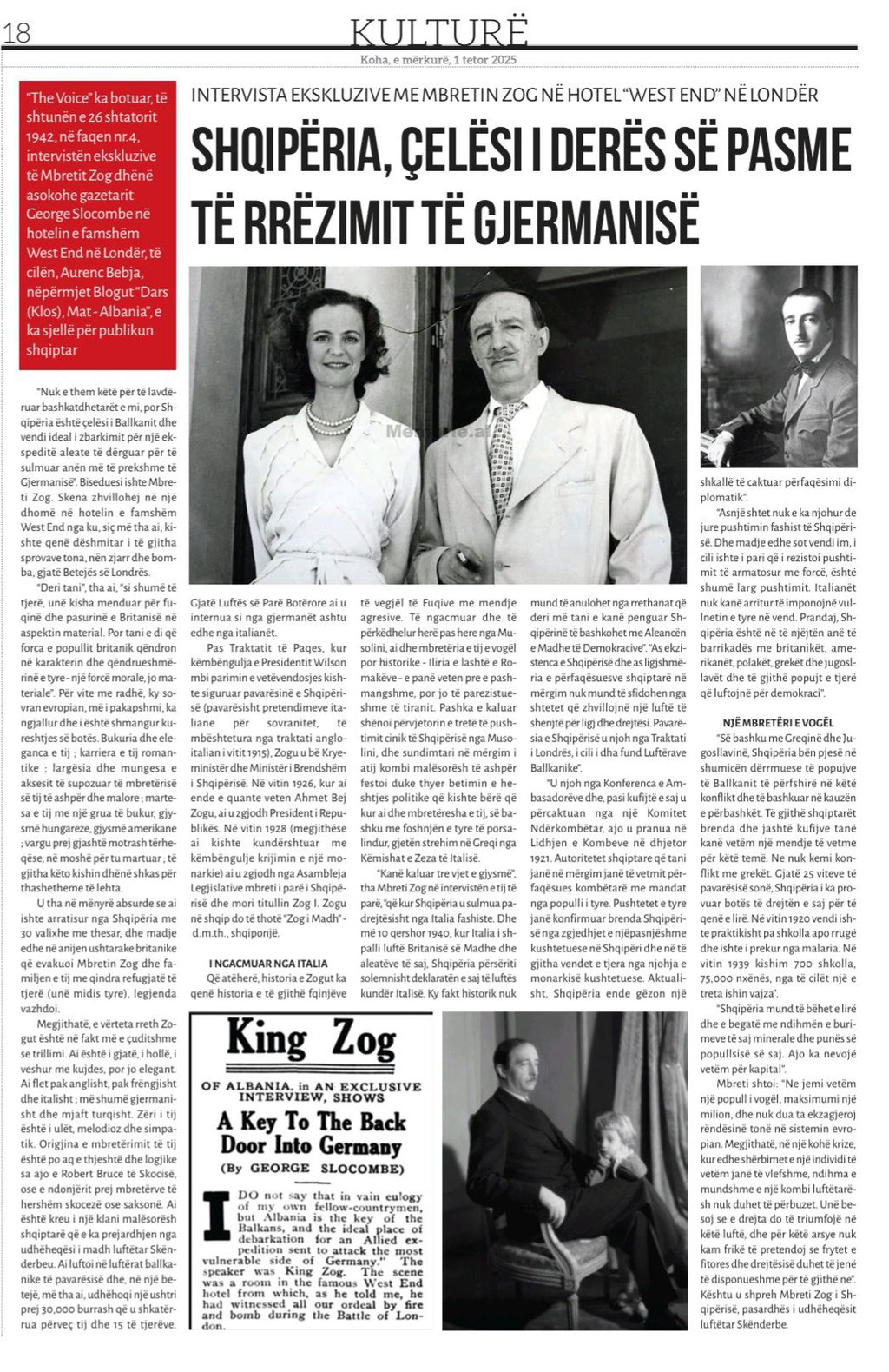 L’Intransigeant (1928) / Ahmet Zogu – gazetarit te Corriere della Sera : « Shqiperia eshte sigurisht nje shtet i ri, por ajo eshte gjithashtu nje komb shume i vjeter. » Reagimi i Beogradit pas shpalljes se matjanit « Mbret i shqiptareve ».